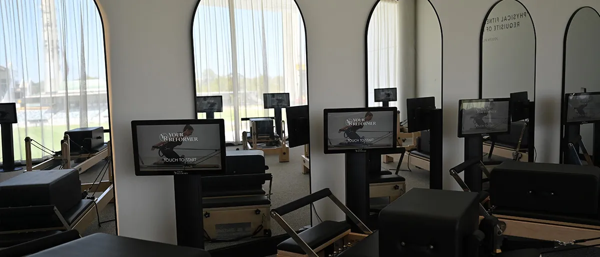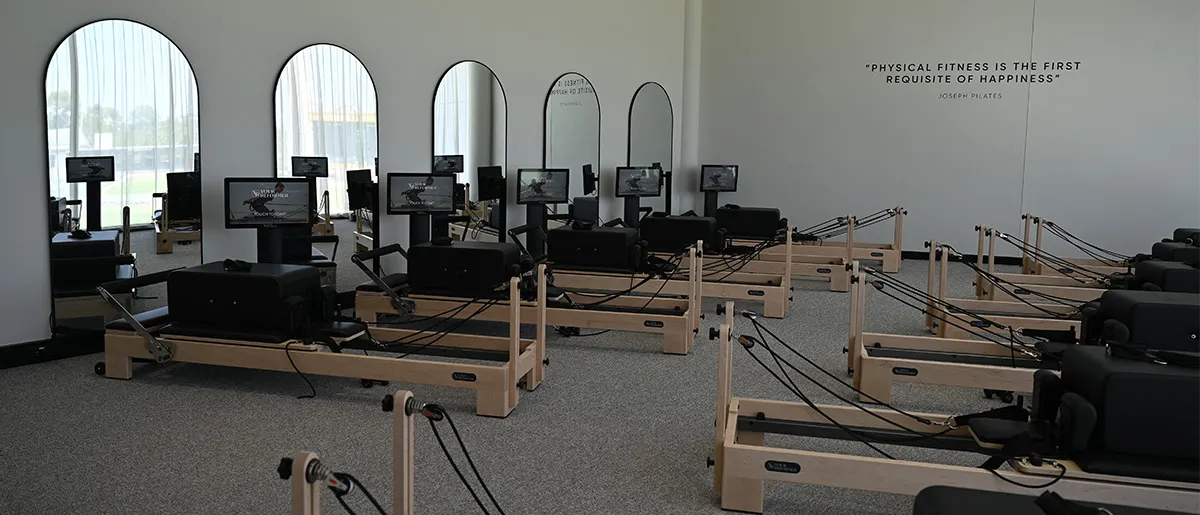 Pilates-style reformer workouts, available on demand. Follow guided sessions on screen and train at your own pace, any time the room is free.